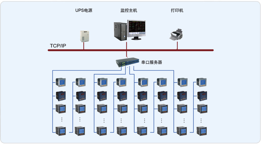 柳州麗笙酒店電能管理系統的監控范圍為分布在兩個配電室的67只PZ48-AI3/C 儀表。經過節能改造后進線采用多功能表,各支路采用電流表。