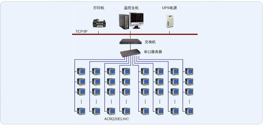 該機場配電室原采用GCS柜兩面,22路出線。原柜體安裝96型指針電流 表,要求實現(xiàn)各回路的電力參數(shù)實時監(jiān)測與功率累計量統(tǒng)計功能,并實現(xiàn)現(xiàn)場斷路器狀態(tài)的監(jiān)控值班室遠程監(jiān)測。項目屬于改造項目,采用安科瑞公司ACR220EK網(wǎng)絡(luò)電力儀表于原配電柜基礎(chǔ)上更換老式指針表。